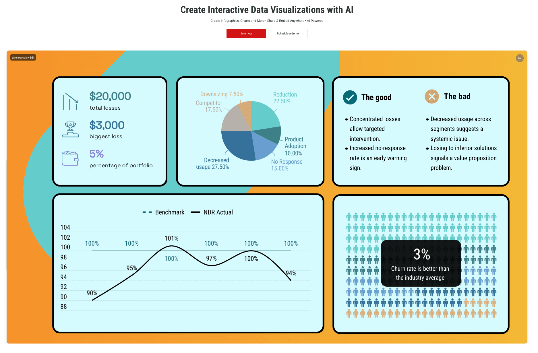 In the age of data explosion, whoever transforms data into visual stories fastest wins the war for attention.