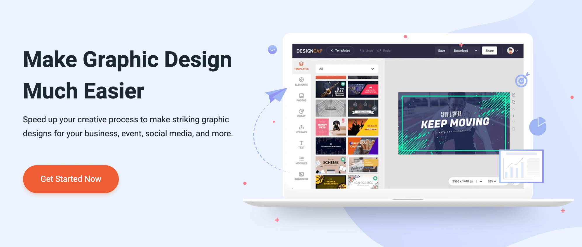 Primarily for presentation slides, but its "Smart Slide" technology works well for single-page data visuals.