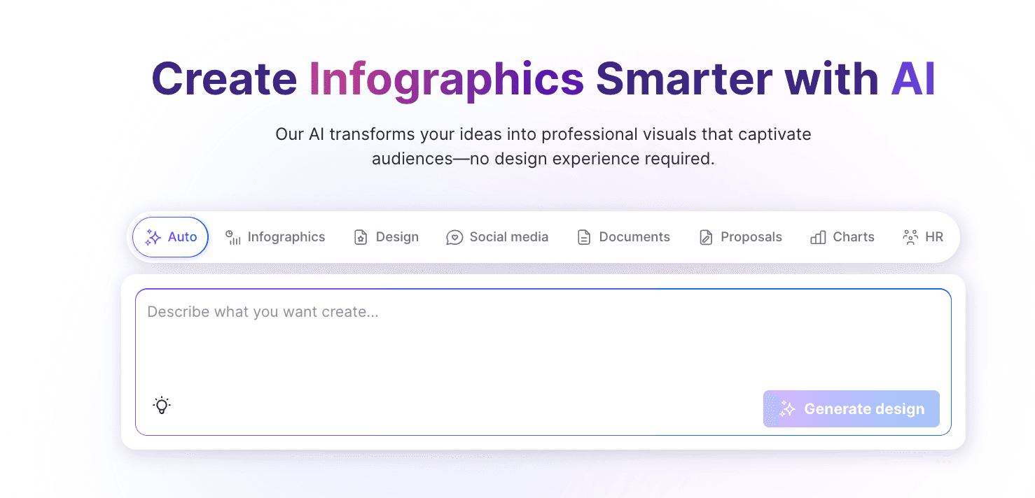 These are tools that leverage artificial intelligence to automatically convert text, numbers, or raw data into visual graphics (like charts, timelines, or posters), lowering the barrier to professional design.