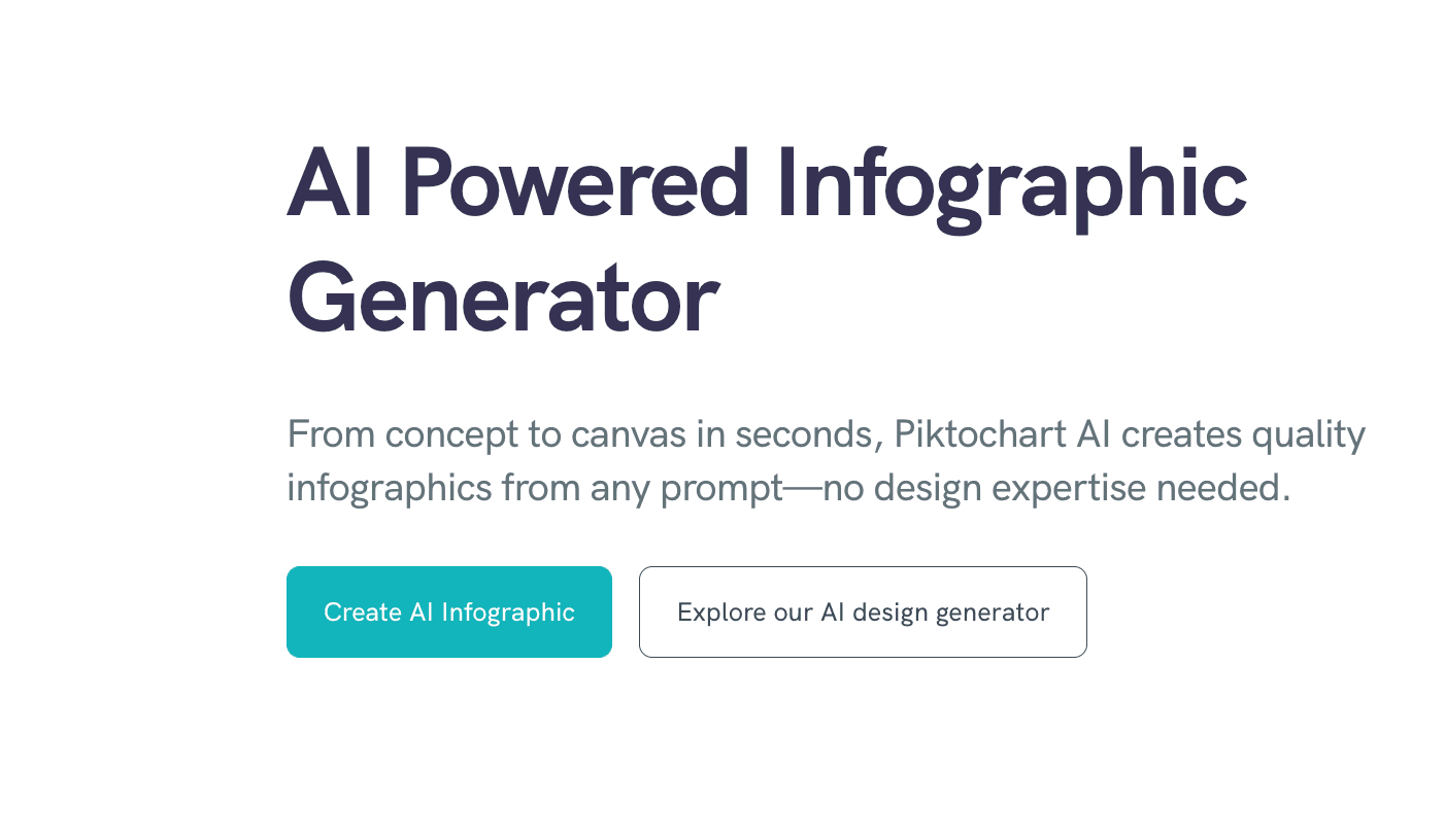 Once the king of static infographics, Piktochart's AI version simplifies the creation process by generating long-form graphics from topics.
