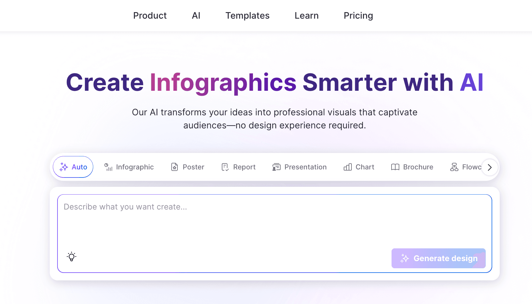 AI-powered text-to-infographic generation for rapid drafting.