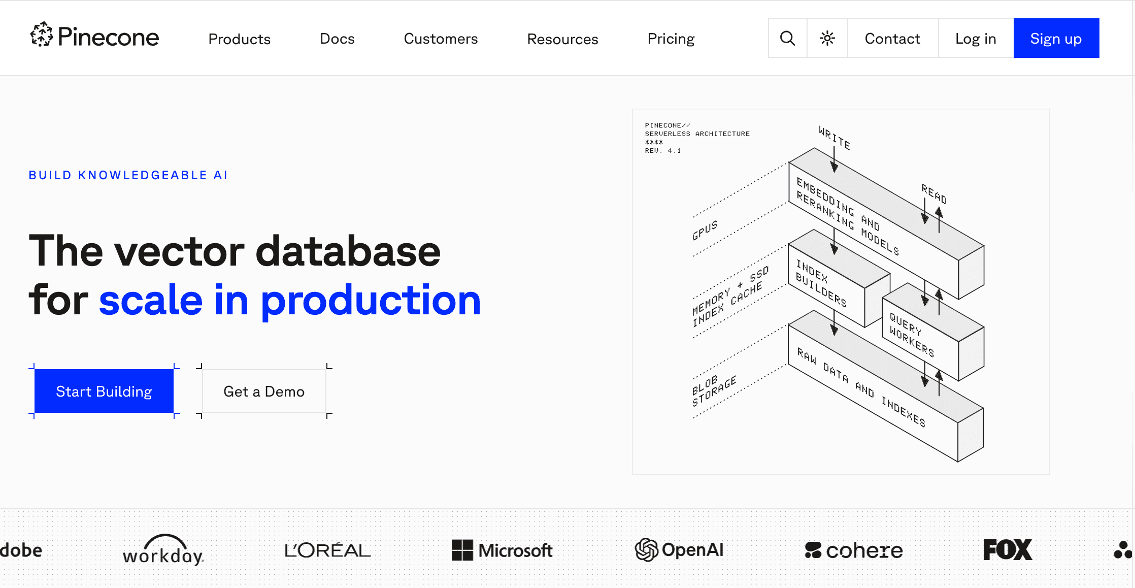 Pinecone offers a free tier, a 50/month Starter plan, a 500/month Pro plan, and custom enterprise pricing.