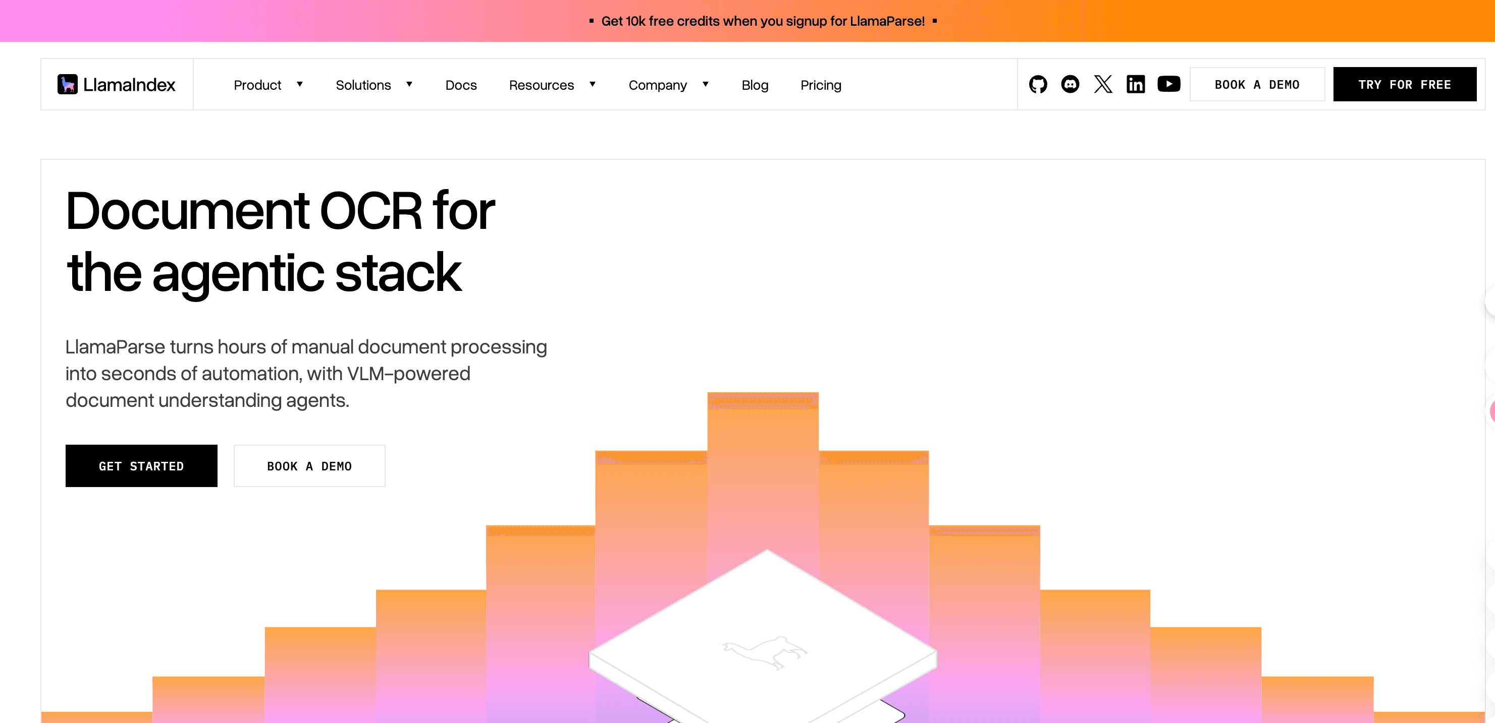 LlamaParse offers a free tier, a 50/month Starter plan, a 500/month Pro plan, and custom enterprise pricing.