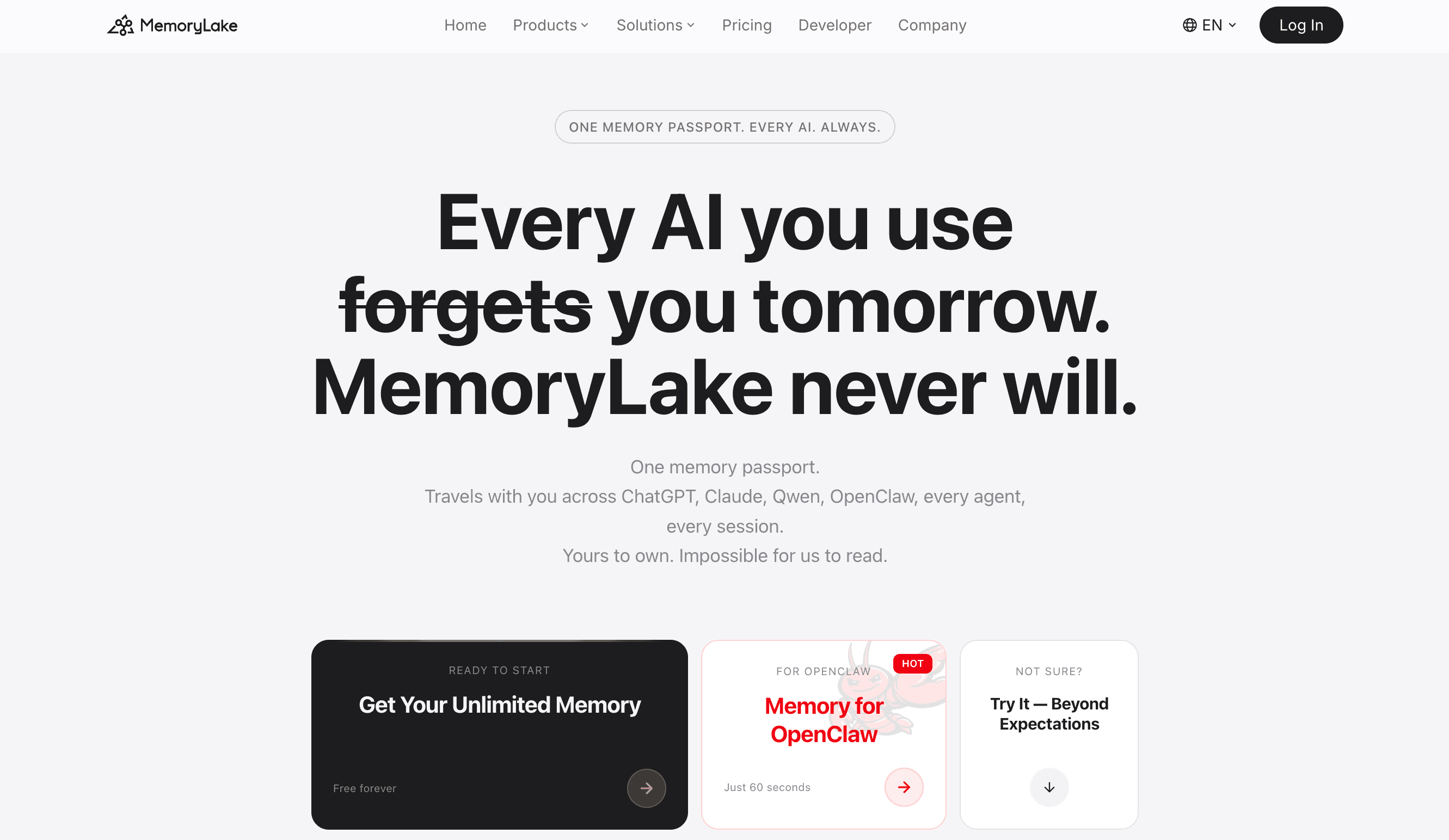 MemoryLake is not just a chat wrapper or a basic vector database; it is a dedicated, persistent AI memory infrastructure. It serves as a portable "second brain" or memory passport for AI systems, agents, and users. Rather than locking your data into OpenAI or Anthropic, MemoryLake sits between your data and the LLMs, allowing any model to access a unified, governed, and long-term memory layer across multiple sessions and agents.