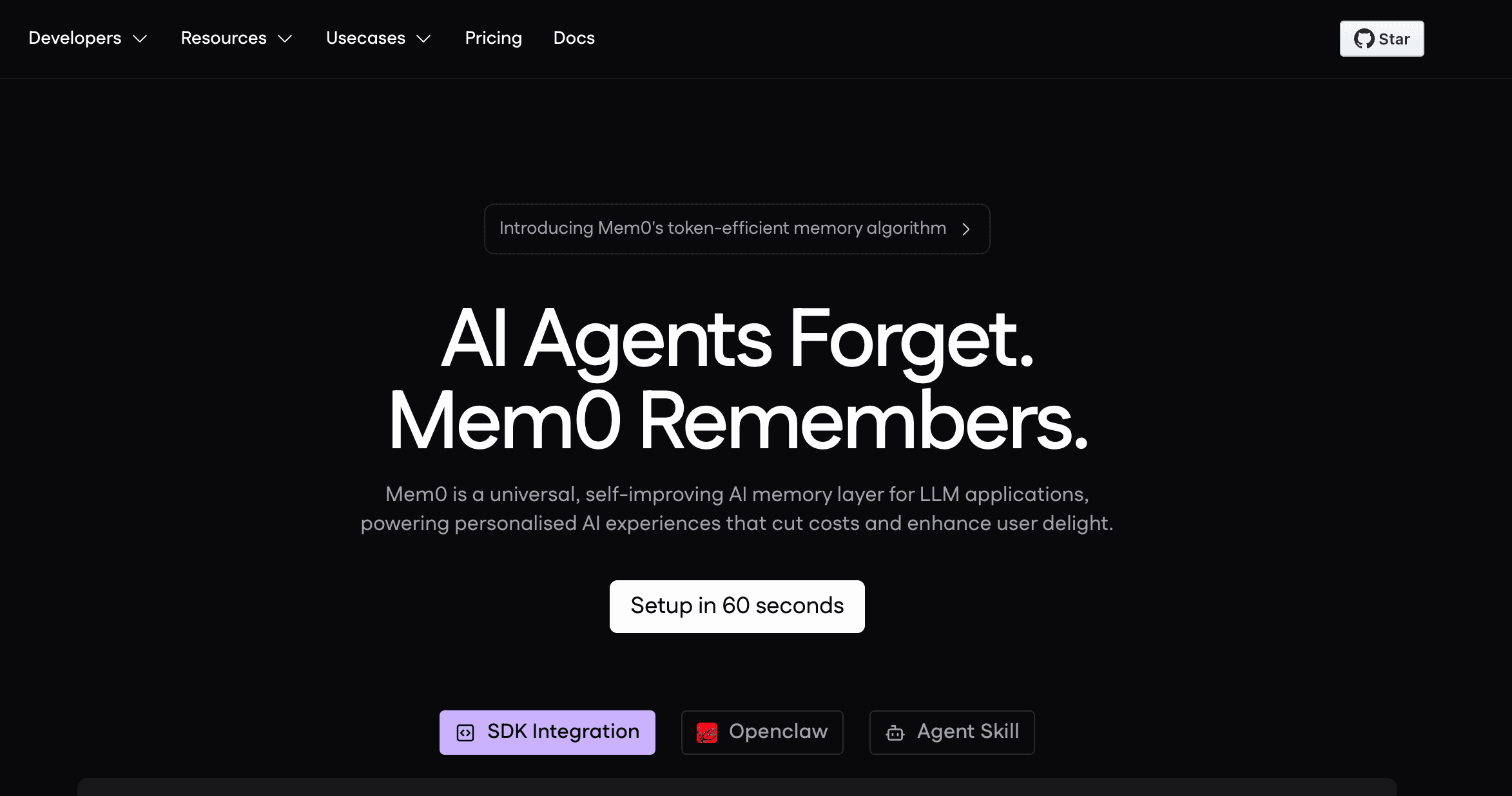 Mem0 (formerly Embedchain) positions itself as an open-source memory layer for personalized AI applications. It abstracts away the complexity of managing databases, vector stores, and prompt injection, giving developers a simple API to store and retrieve user history and document context.