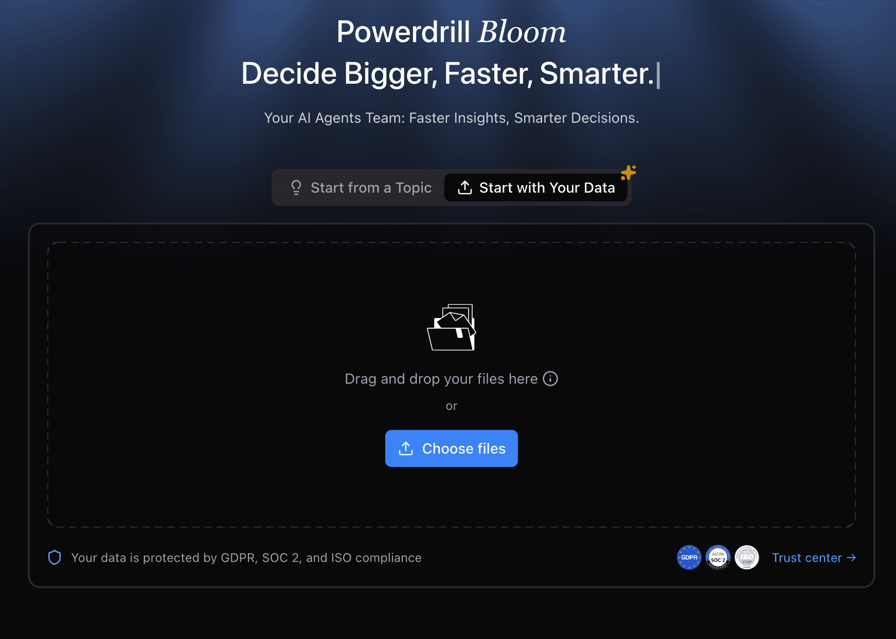 Simply upload your Excel, CSV, or PDF files into the platform. Bloom handles the parsing instantly.