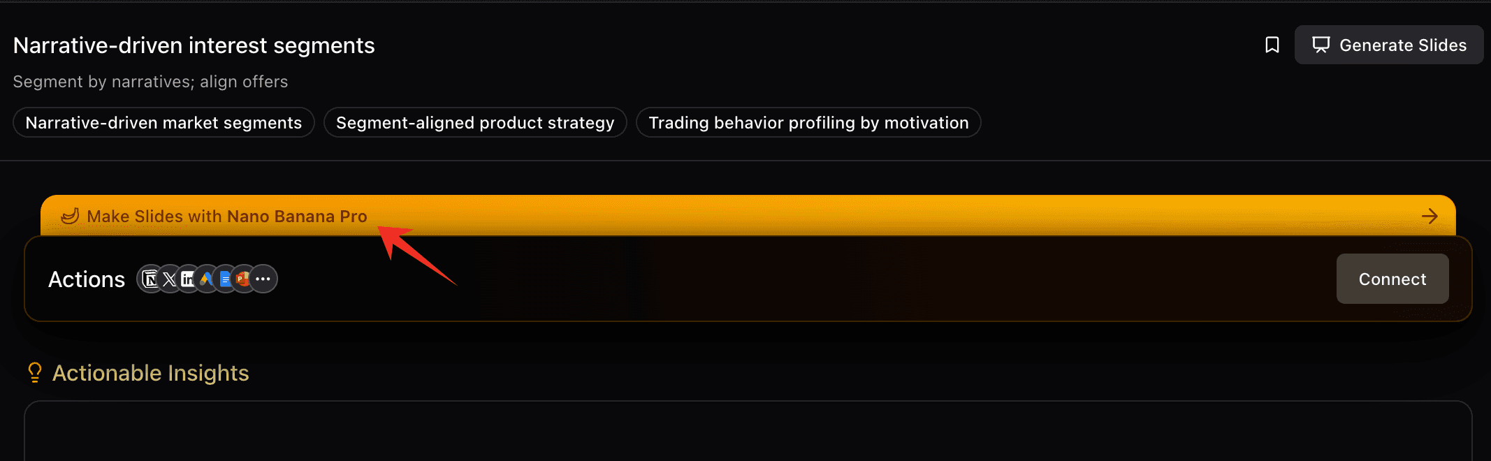 Once your graph is ready, use the Nano Banana Pro integration to export your findings into a polished PPT deck or a Notion page.