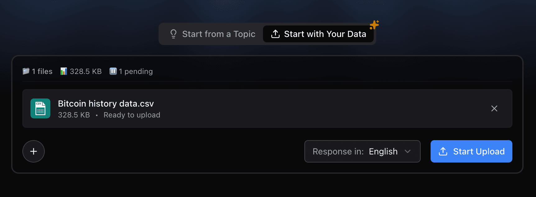 Option B (Topic Driven): Simply type a prompt like, "Analyze the trend of Bitcoin history data"