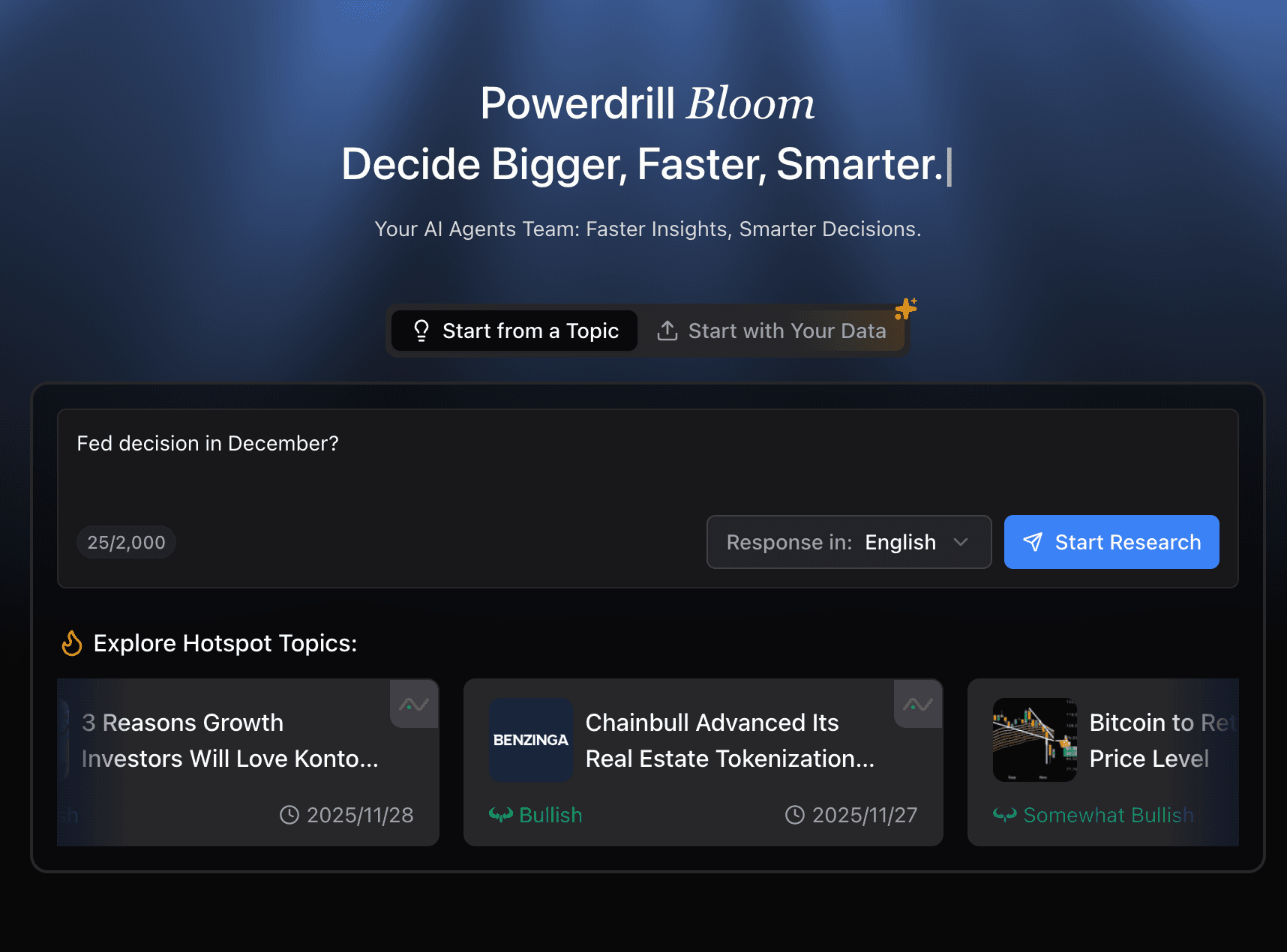 Start with clarity. Open Powerdrill Bloom, log in, and forget about complex prompt engineering. You just need a focused topic.