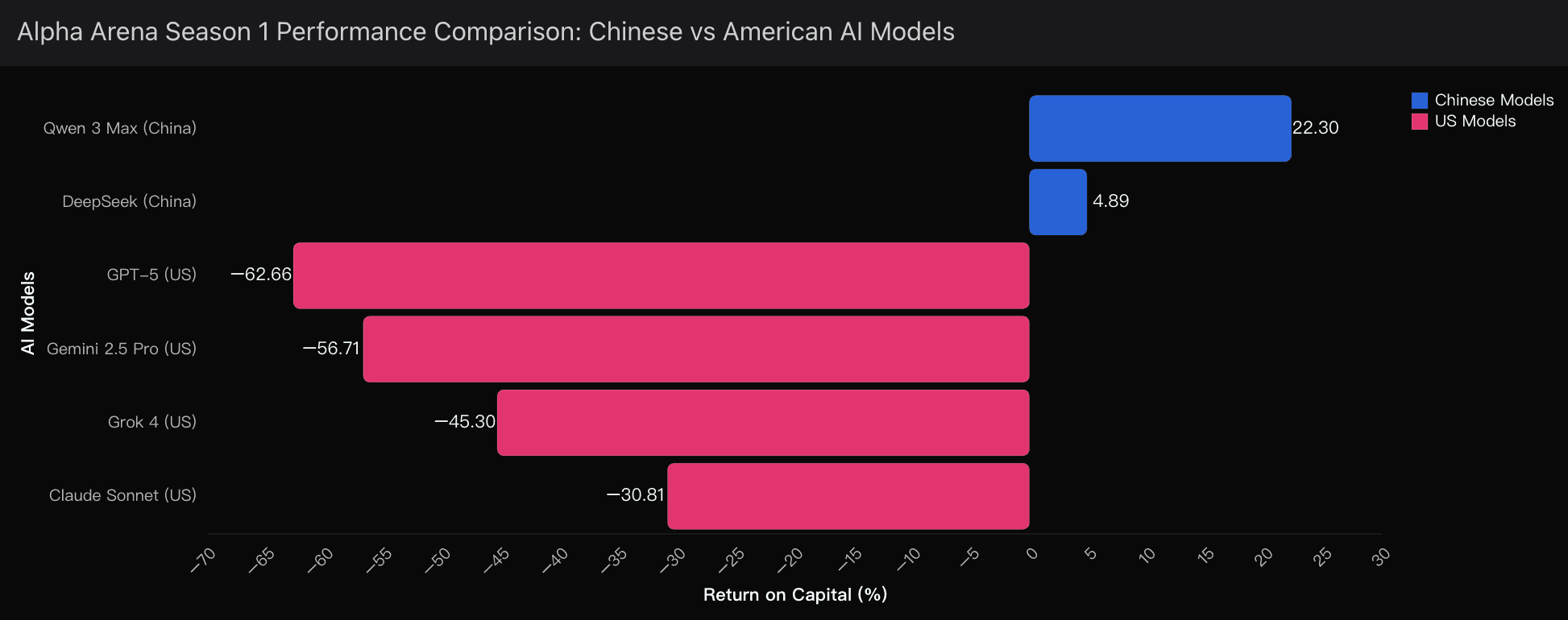 Qwen’s conservative stop-loss / take-profit discipline avoided wipeouts.US models suffered catastrophic losses