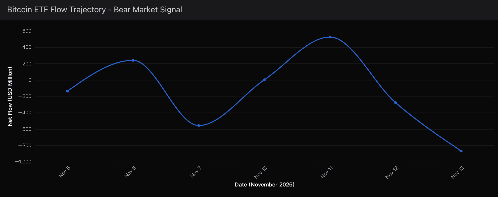 The November 13th outflow is not just another red candle on a chart. It is the second-largest single-day withdrawal since ETF inception, surpassed only by the $1.14B panic exit we saw in February.