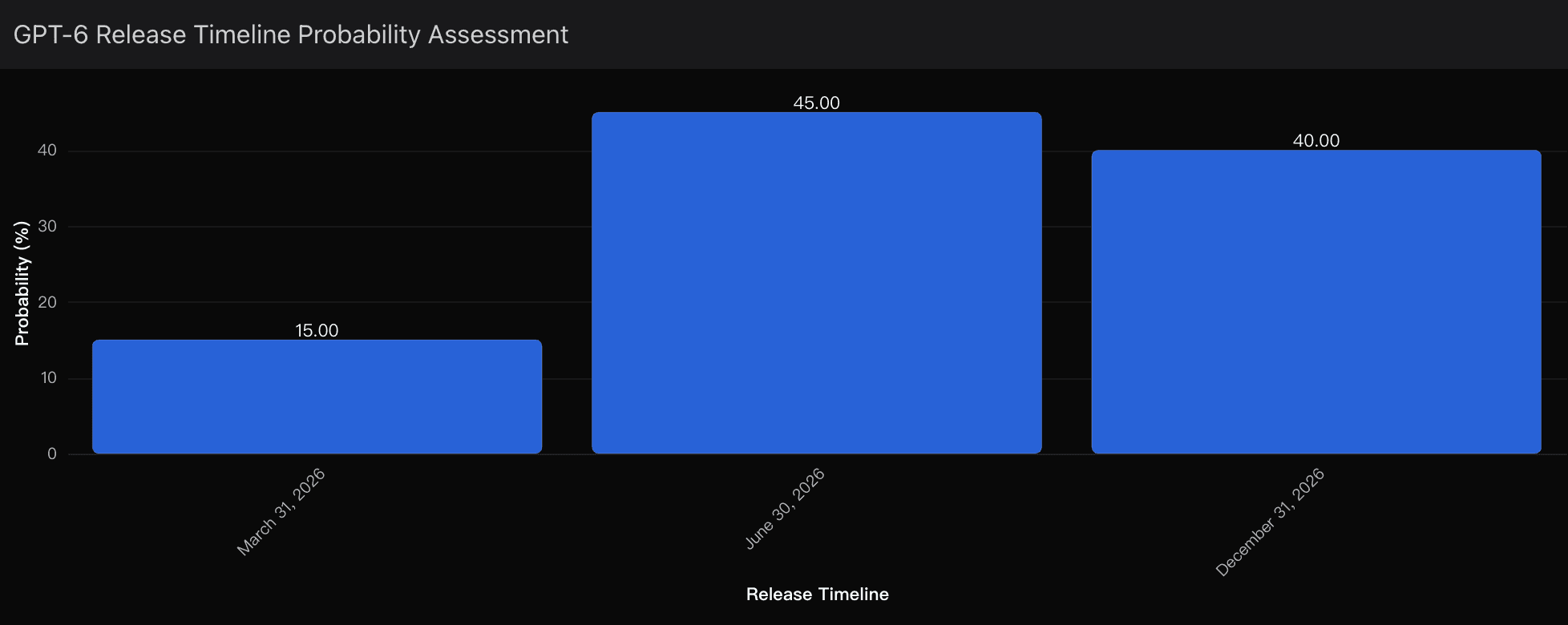 GPT-6 will launch around June 30, 2026 — 45% probability.