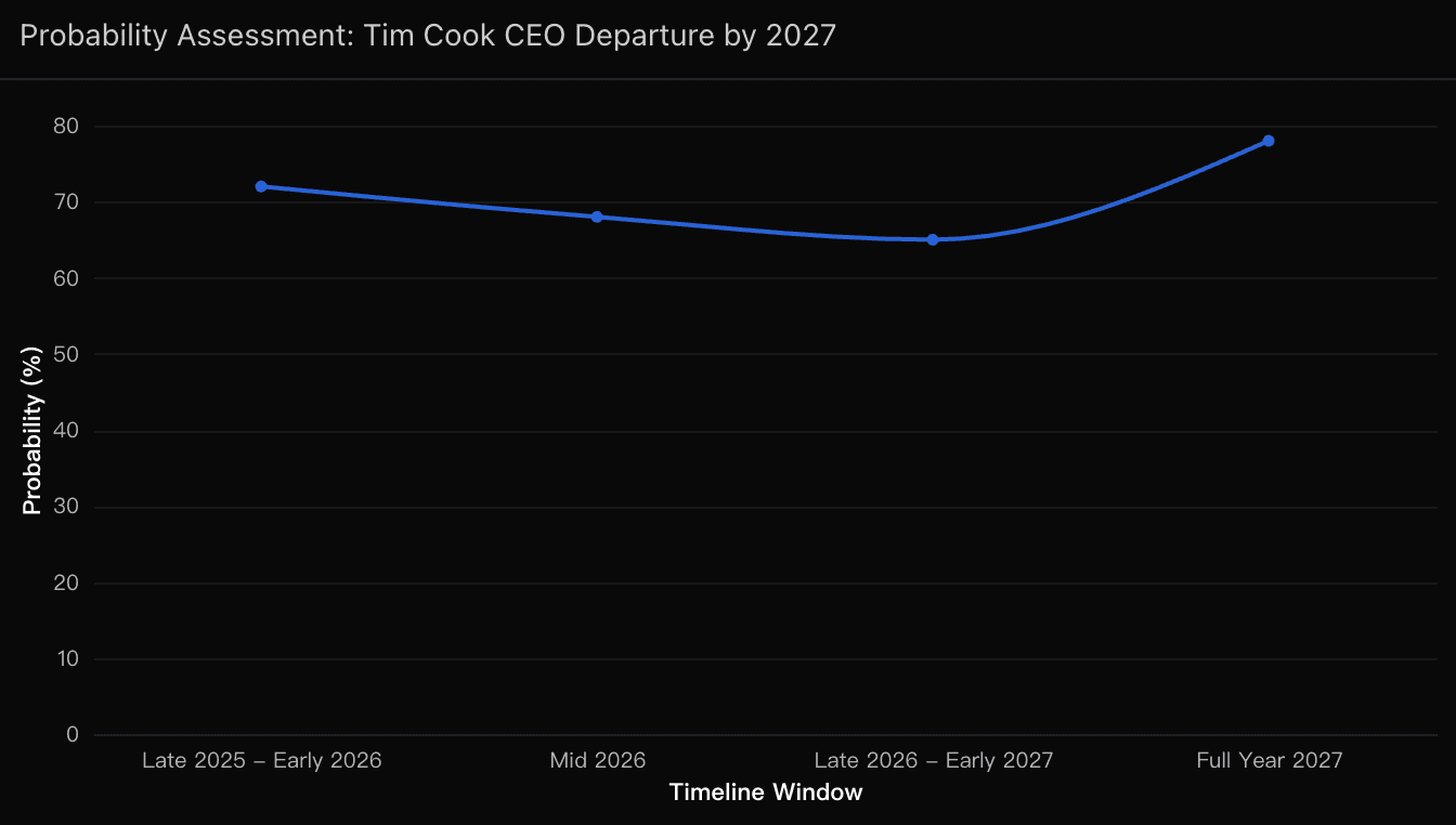 Put simply, Cook isn’t locked in by financial deadlines anymore. The incentive to stay wanes as strategic clarity about successors emerges.