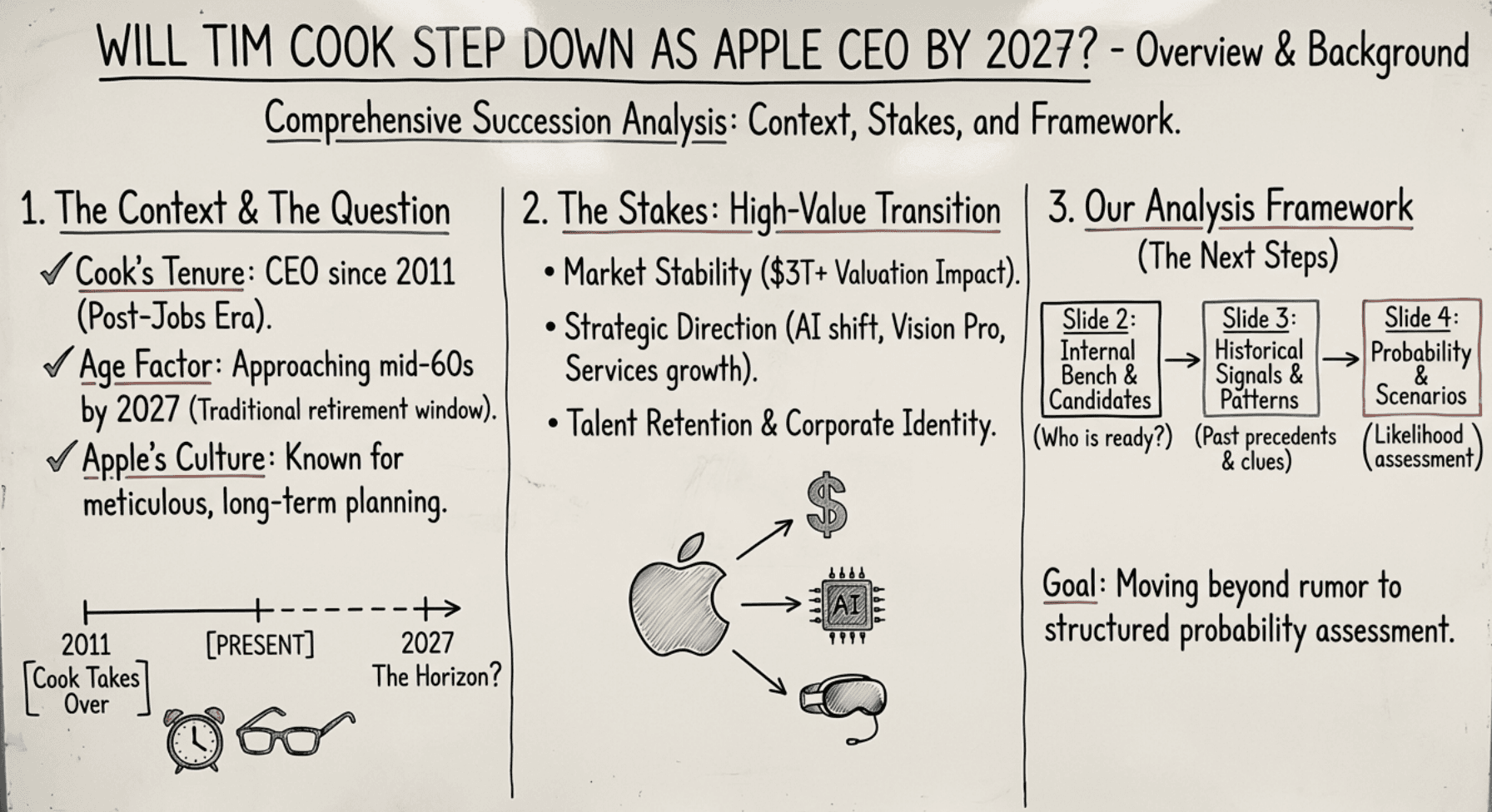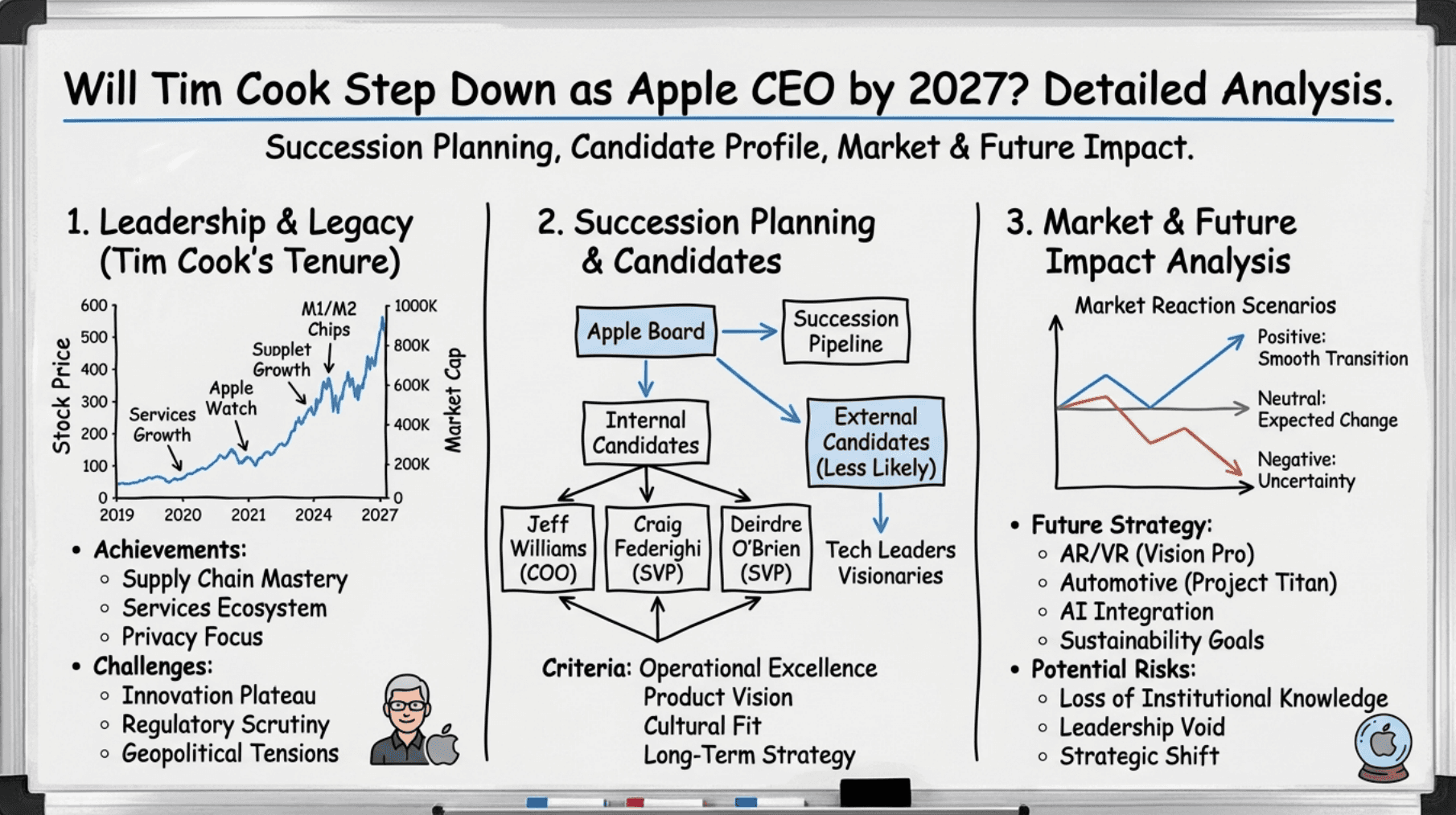 Insider chatter about successor roles — product oversight, hardware divisions, and global operations — indicates readiness for a distributed leadership model before formal handover.