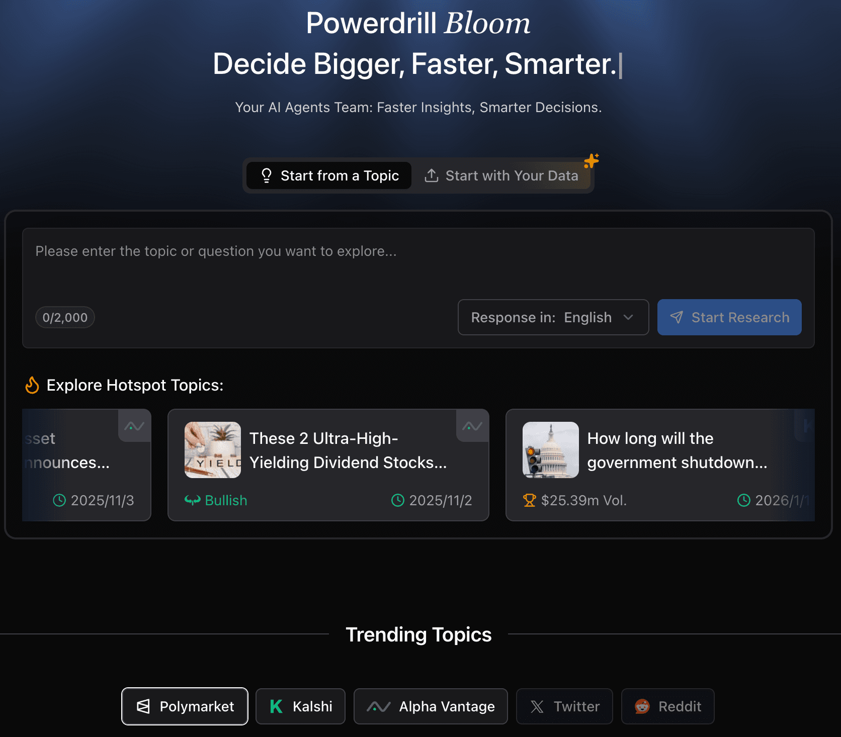 That silence intrigued me. It suggested a gap — a space for data-driven forecasting rather than hype. So, I turned to Powerdrill Bloom, predictive decision intelligence agent, designed to simulate real-world uncertainty and quantify outcomes far beyond intuition.