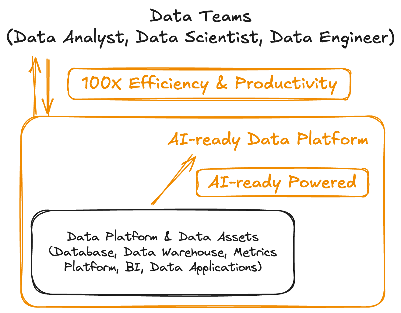 Unlock 100X efficiency and productivity in data work with AI, empowering data analysts, scientists, and engineers to automate routine tasks, streamline complex processes, and focus on strategic insights, which significantly boost the impact and efficiency in the organization.