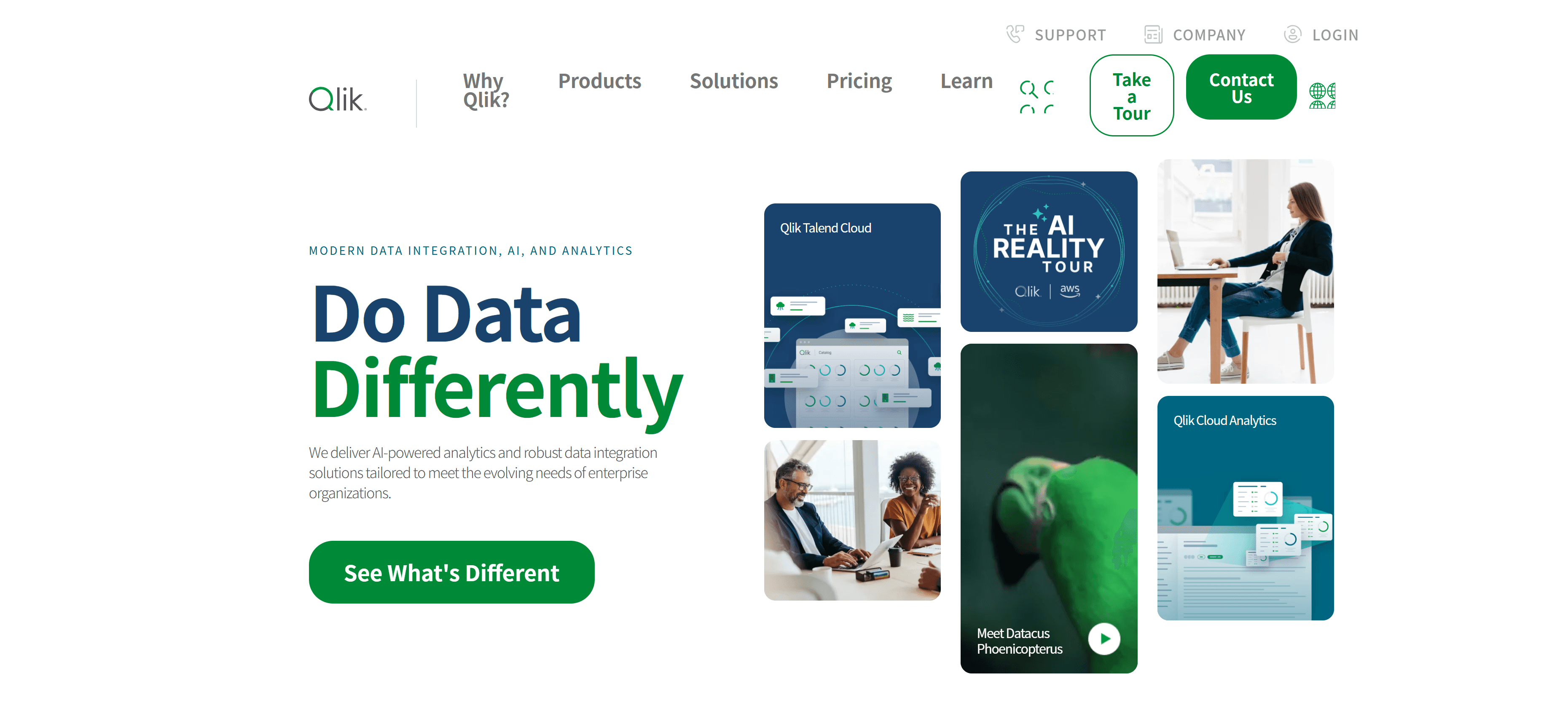 Qlik es una plataforma integral de análisis y Business Intelligence que incorpora IA y machine learning para ofrecer insights en tiempo real y predicciones precisas. Su motor de IA, Qlik AutoML, automatiza la construcción y despliegue de modelos predictivos.
