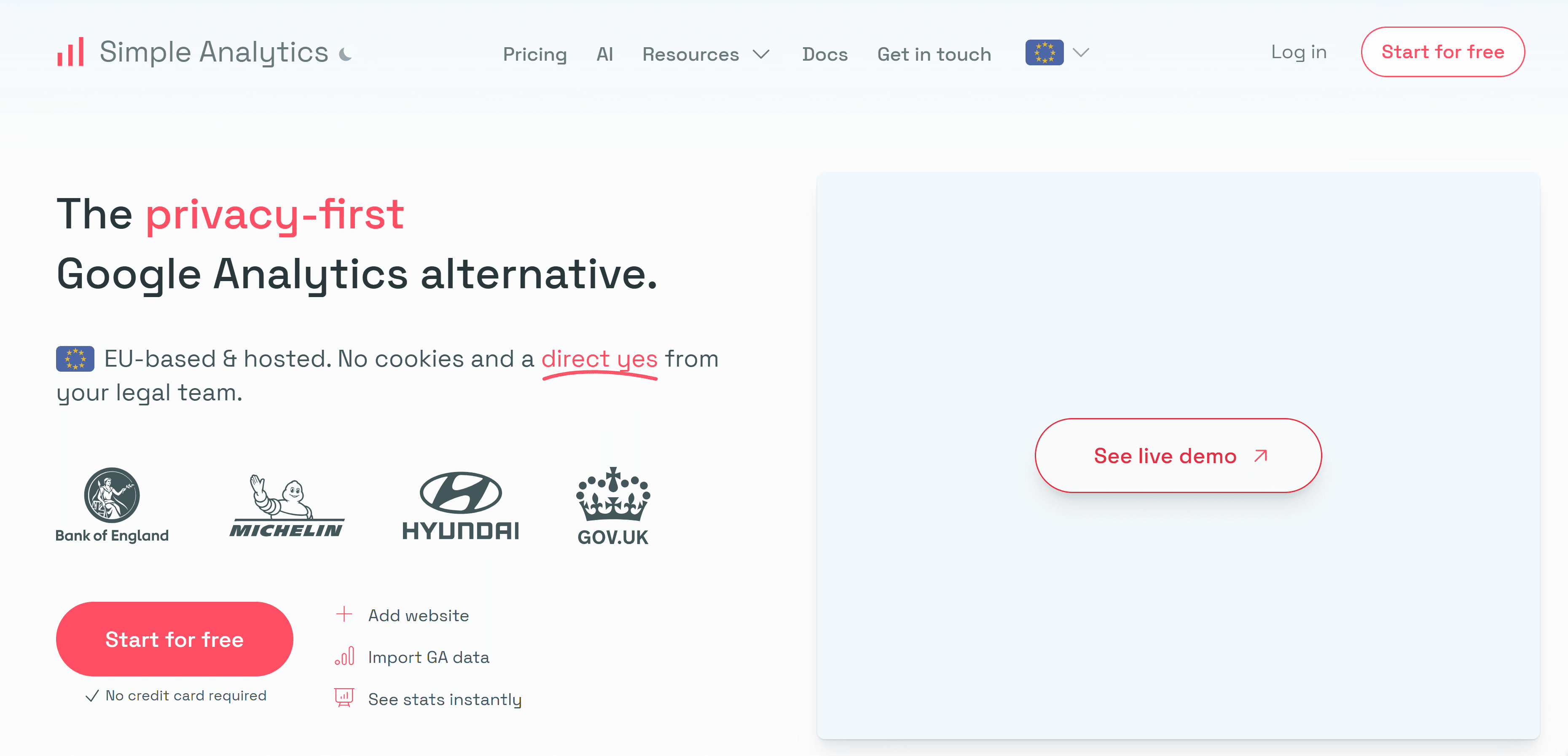 Simple Analytics es una alternativa ética y centrada en la privacidad frente a Google Analytics. Ofrece informes sencillos y procesables sin necesidad de conocimientos técnicos ni comprometer la privacidad del usuario.