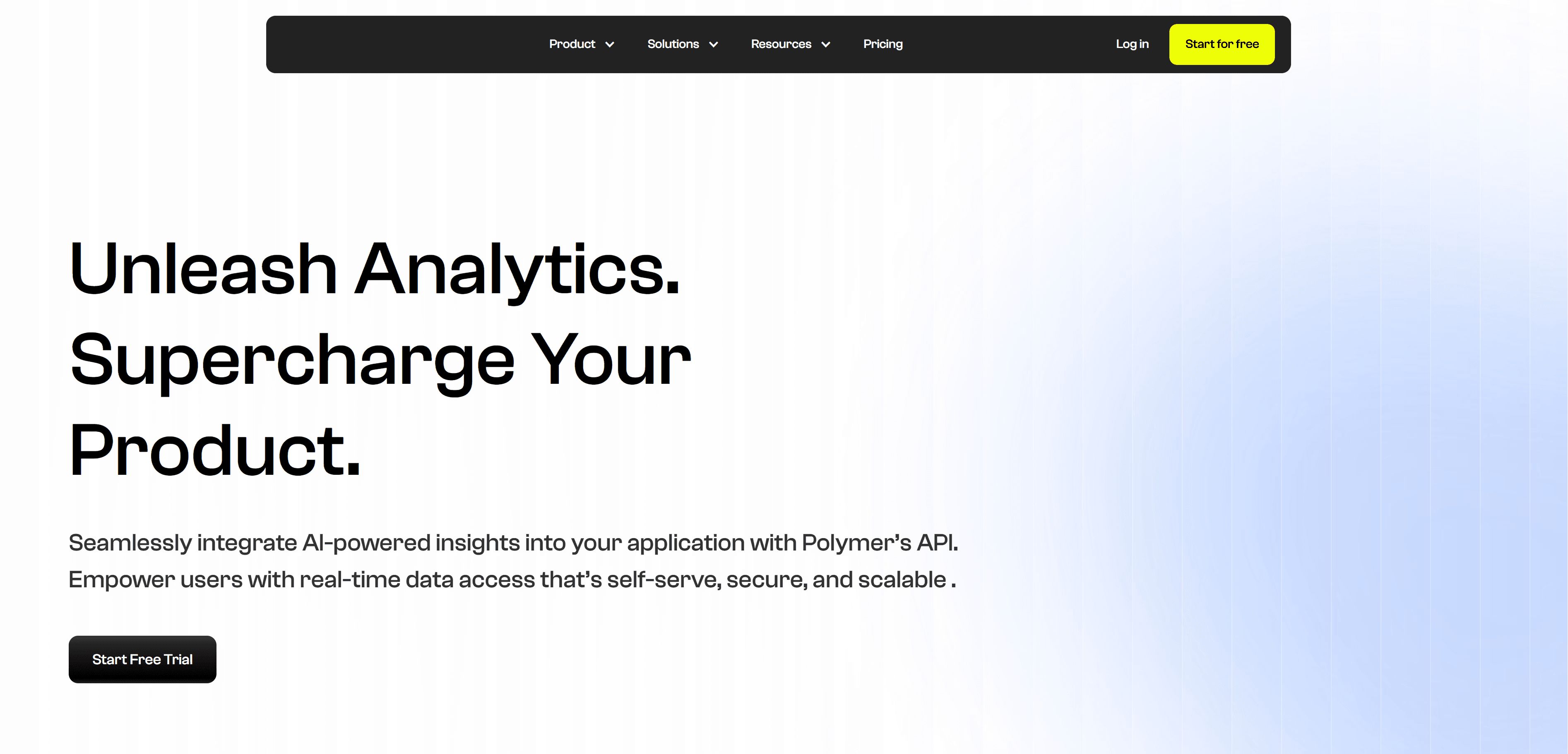 Polymer es una plataforma de dashboards impulsada por IA que permite descubrir insights sin necesidad de conocimientos técnicos. Basta con subir una hoja de cálculo y Polymer analiza los datos automáticamente, recomendando los gráficos más relevantes y atractivos.