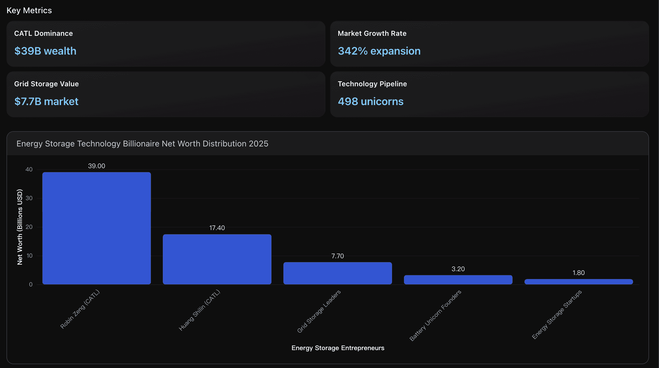 Evaluación del surgimiento de nuevas fortunas derivadas de la gestión y almacenamiento de energía, con un mercado que crece de 66.000 a 294.000 millones para 2032, creando una nueva élite de multimillonarios tecnológicos.
