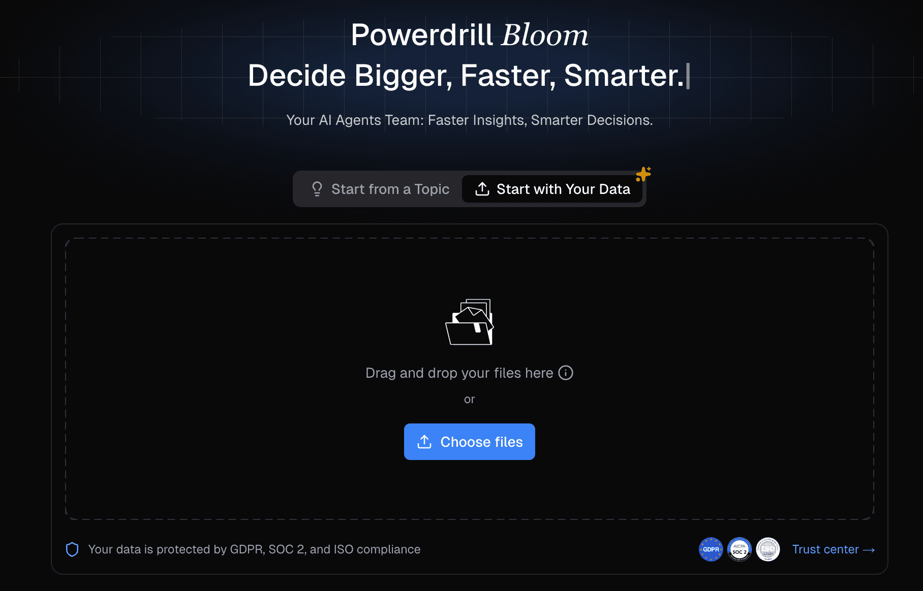 ナノバナナプロエンジンにより、未加工のファイルを扱うことができ、コーディングスキルなしで美しく、プロフェッショナルなスライドと深い洞察を生成できるため、Powerdrill Bloomが非常に推奨されます。