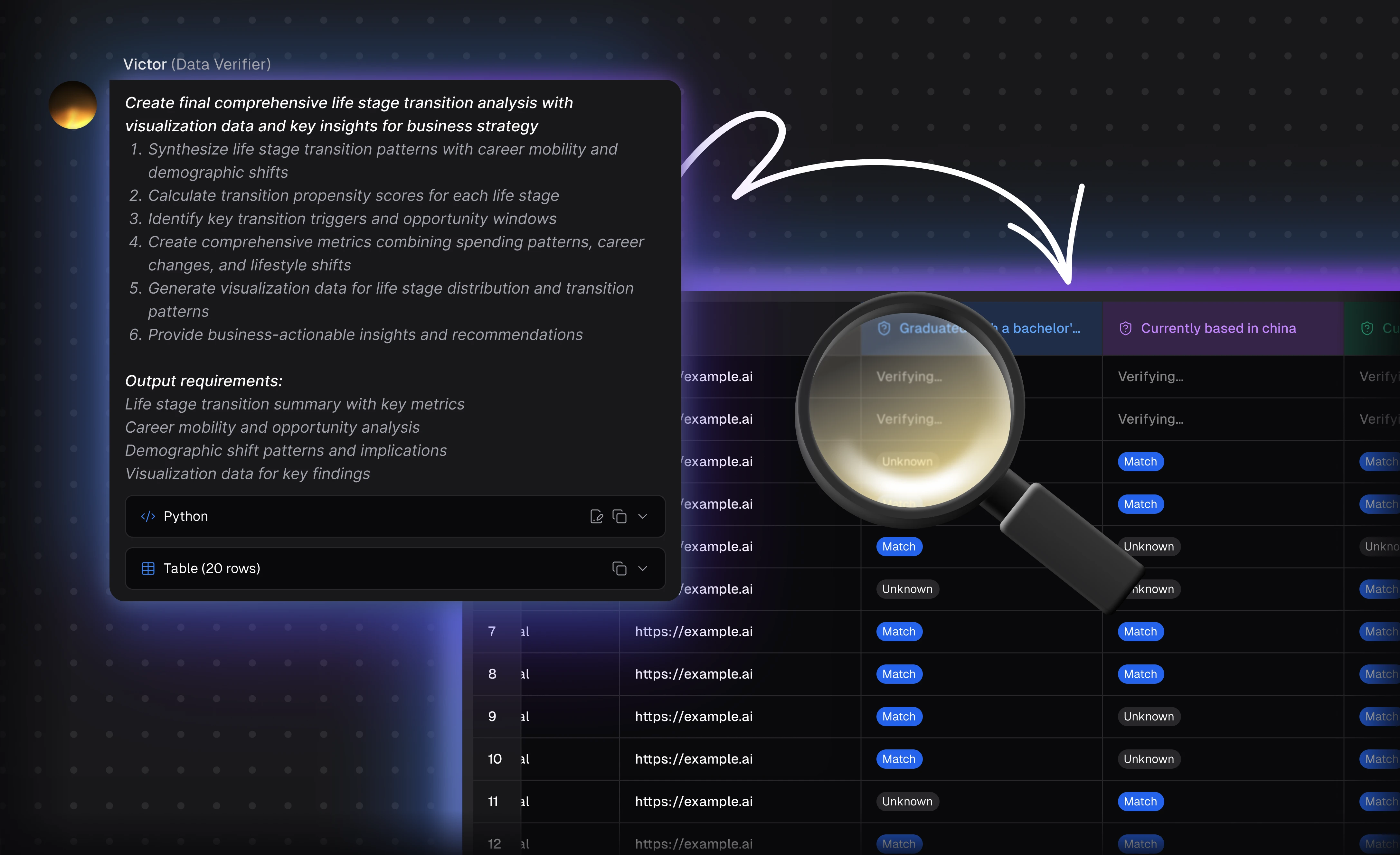 データ検証は、Bloomのデータ検証エージェントにお任せください。ウェブソースとの自動照合、計算の確認、不一致の検出を正確に行います。これにより、時間のかかる手動チェックやコストのかかるレビュープロセスから解放され、高い品質と信頼性を備えたデータ分析が可能になります。